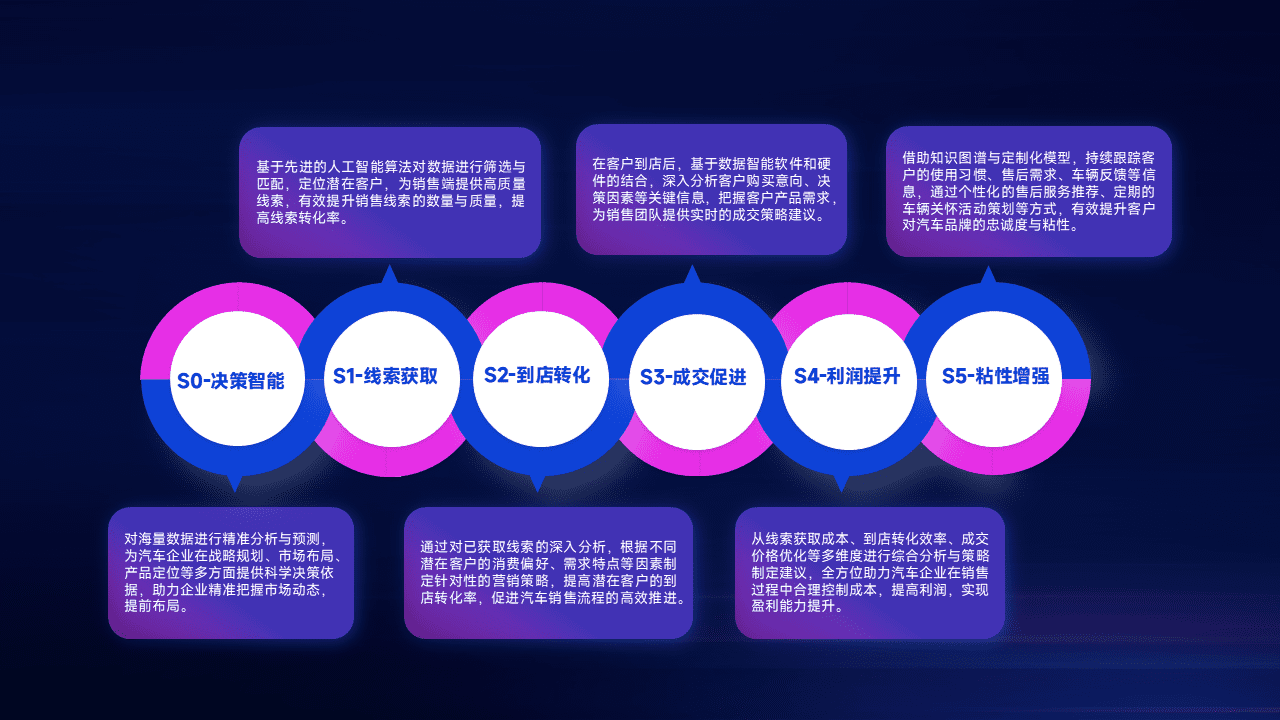 通过拓宽潜在客户来源、、优化线索分配并提高到店转化率,,以增强销售效率。。。同时,,利用线索数据不断优化分析模型,,有效提升转化率,,,扩大营销影响力。。。。